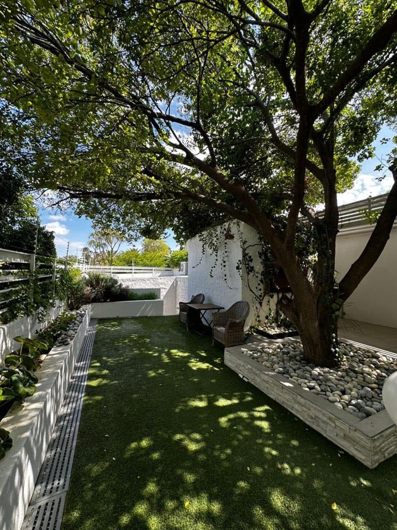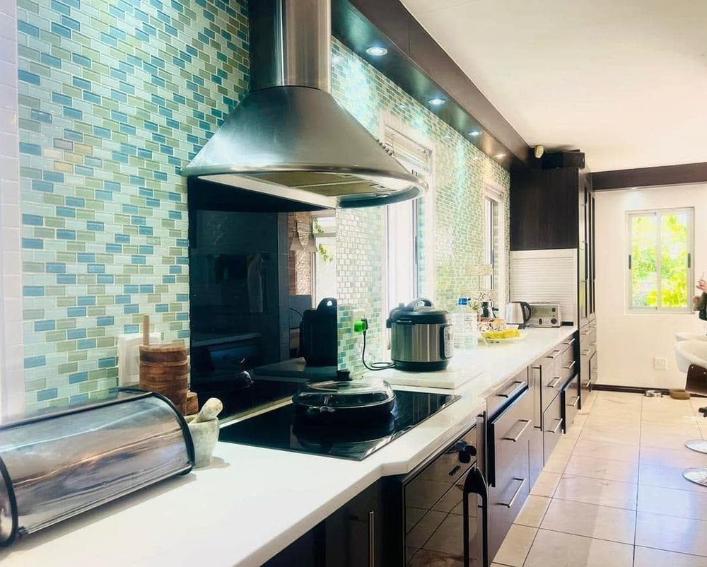 Outdoor entertainment area with built-in BBQ and extractor fan