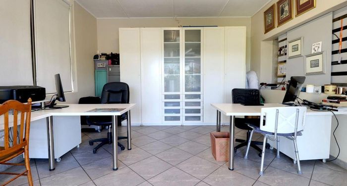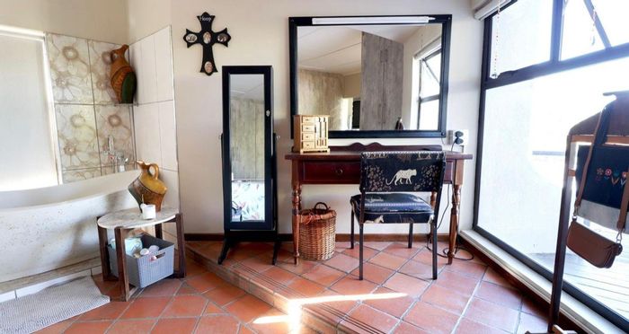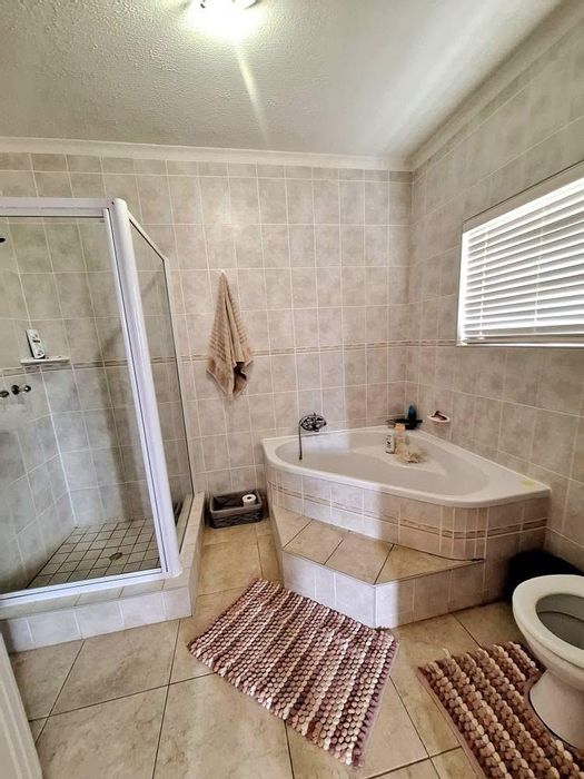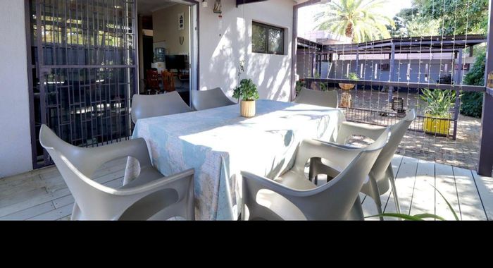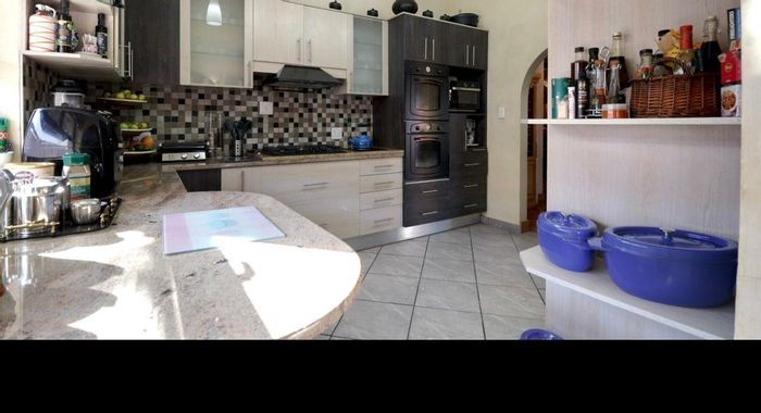 Entertainer's retreat in Pionierspark with relaxed indoor-outdoor living, covered patios with built-in braai and pool, plus an aquaponic vegetable system; three bedrooms, four bathrooms, double garage.