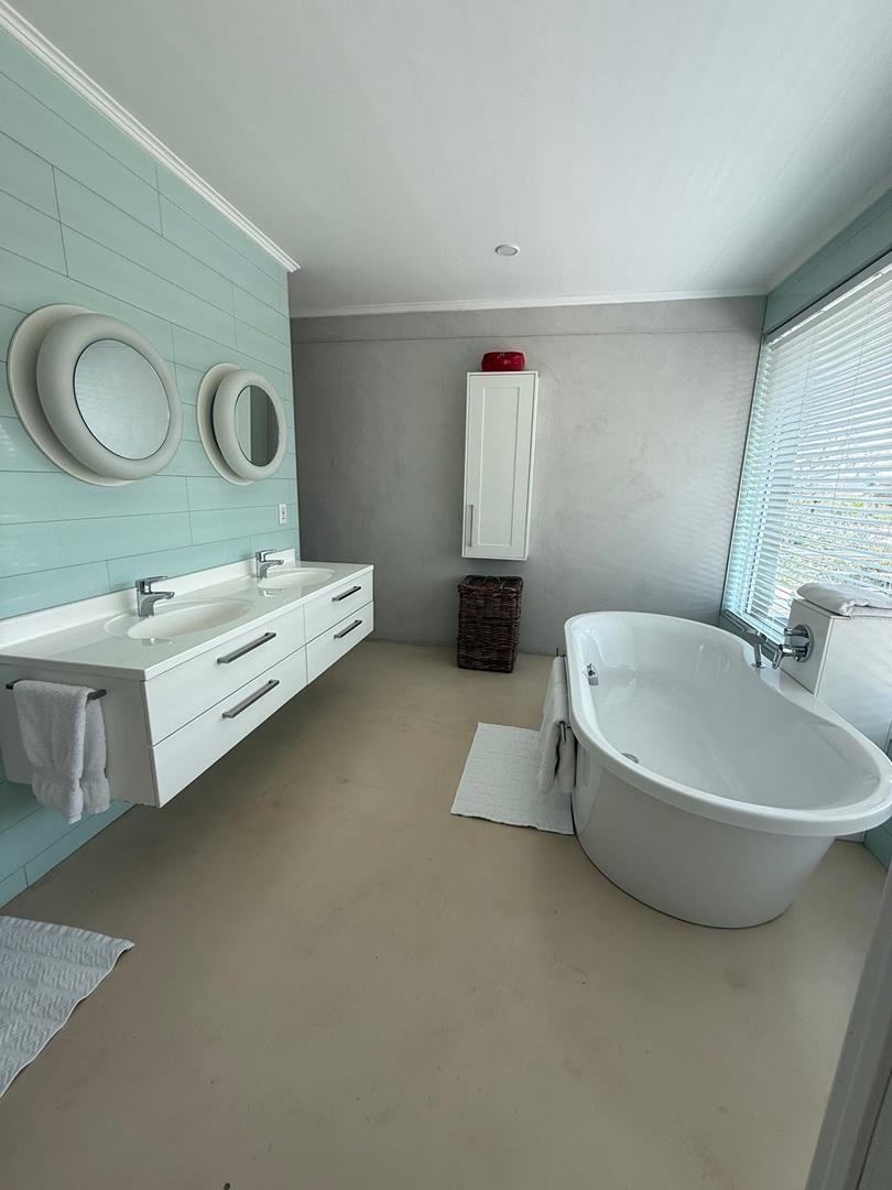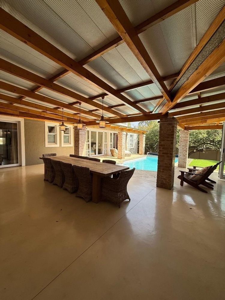 Large outdoor patio with built-in braai, overlooking the swimming pool
