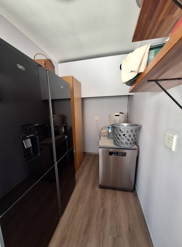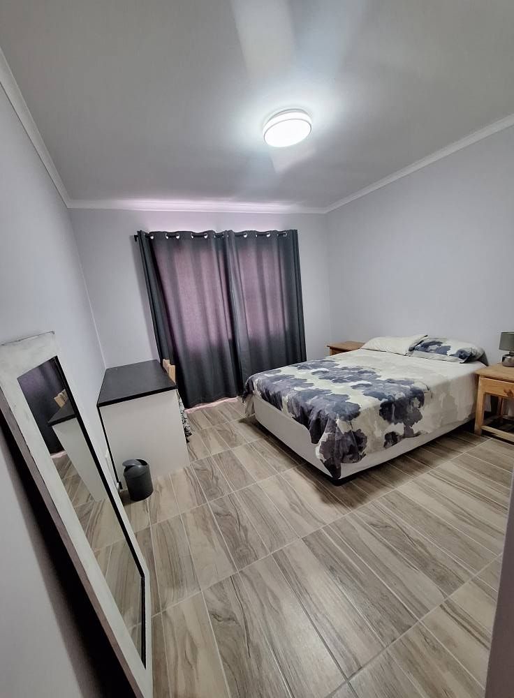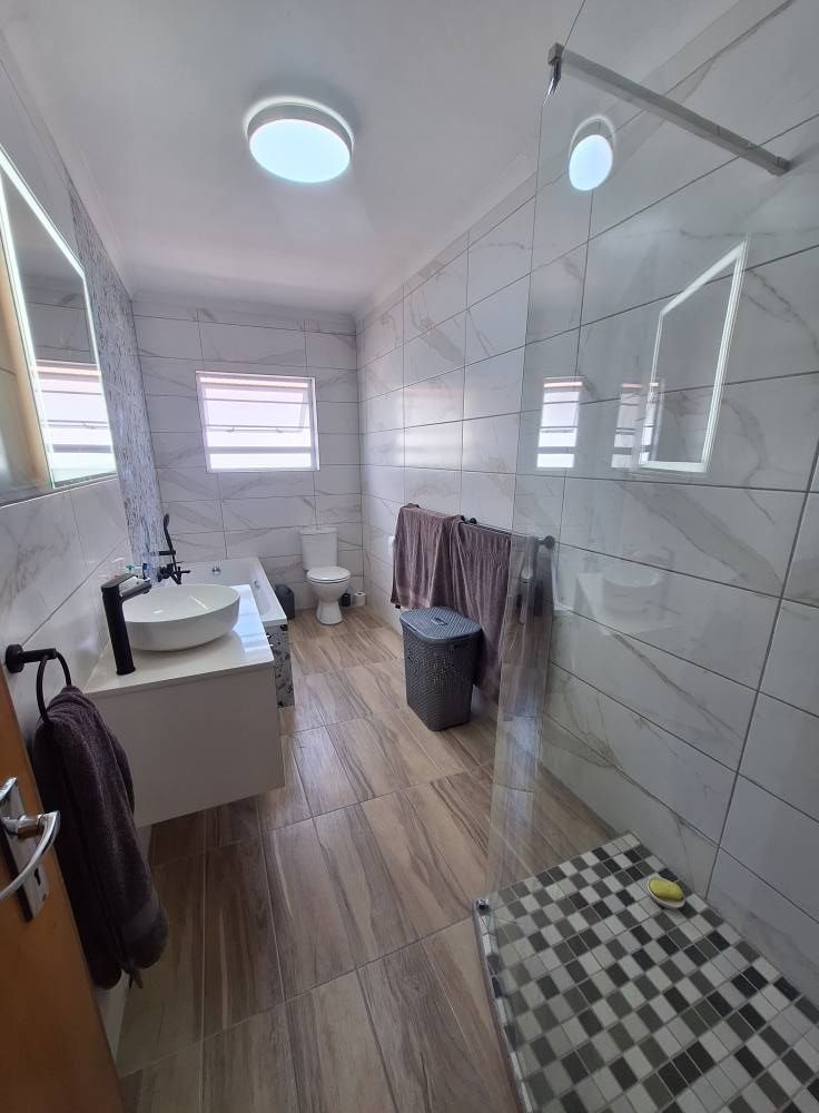 Double garage with a third new garage door . Alarm systems, burglar bars and safety doors throughout the house aswell as the flat has its own entrance with own garage , renovations included, new flooring (tiles) , new taps ect.