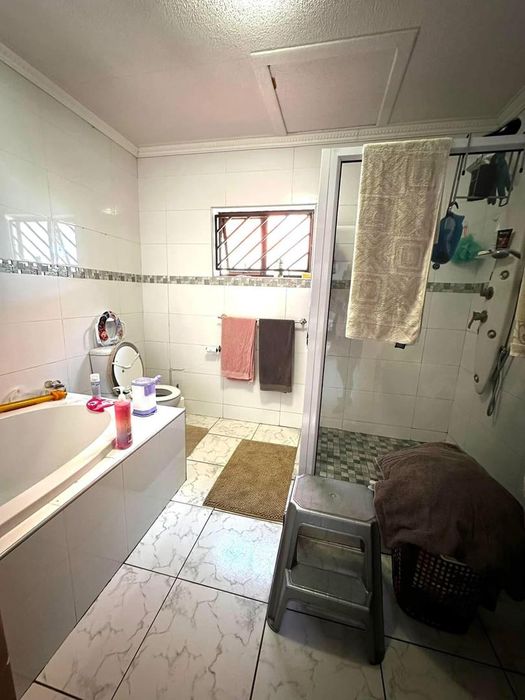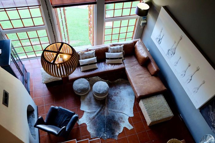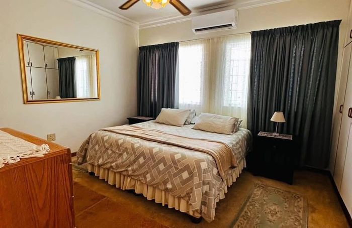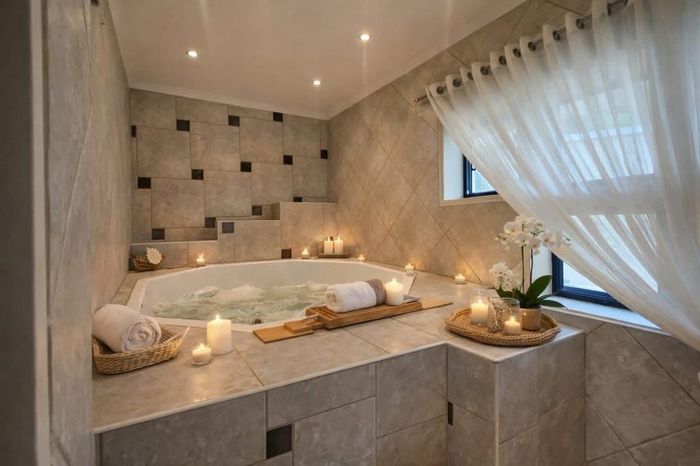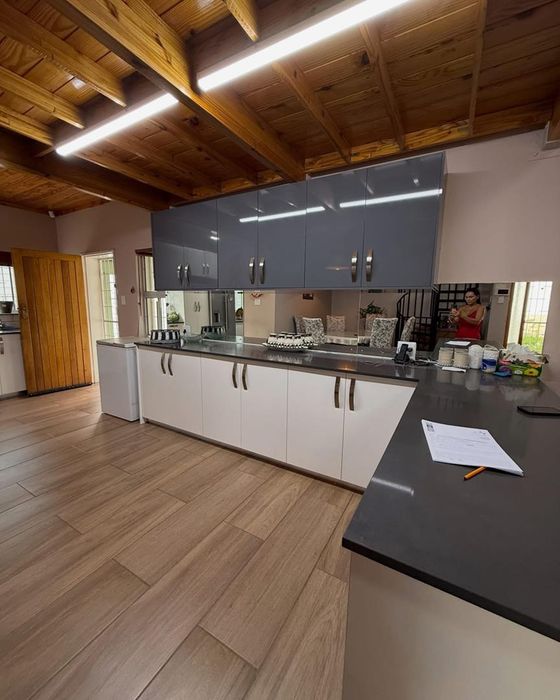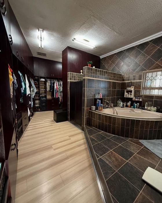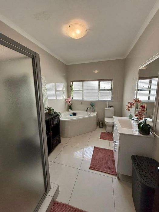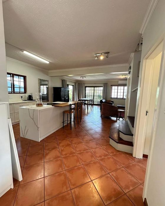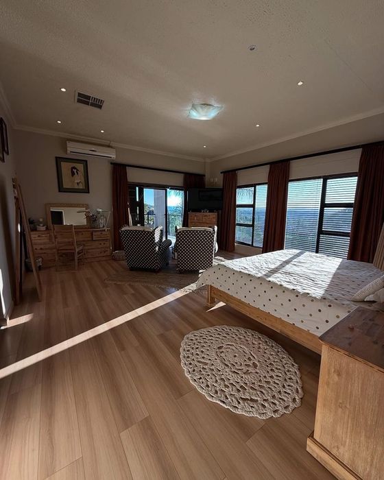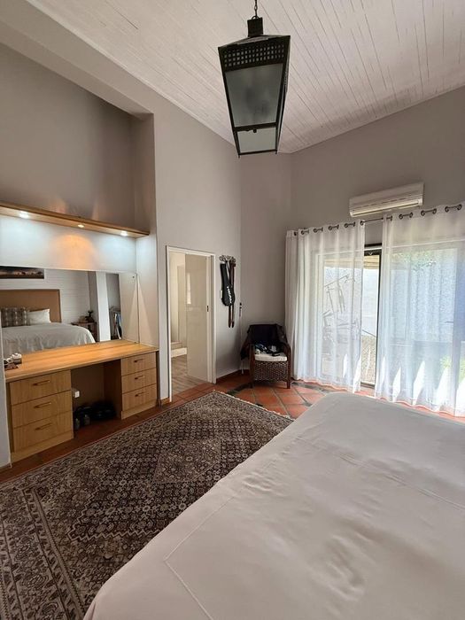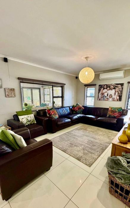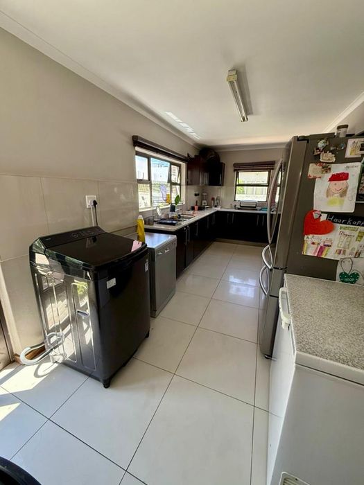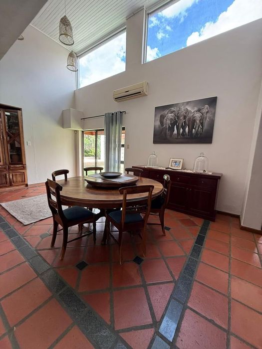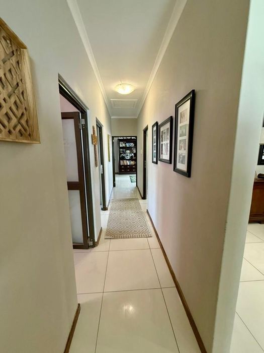 Entertainer's dream in Ludwigsdorf with pool-centered U-shape design and double-volume exposed-beam ceiling, expansive patio with built-in braai. Five en-suite bedrooms, media room, double garage.