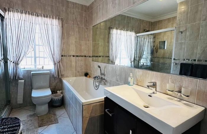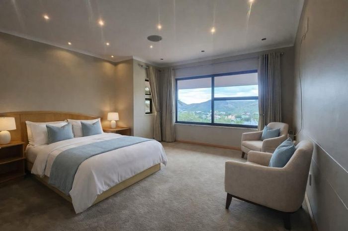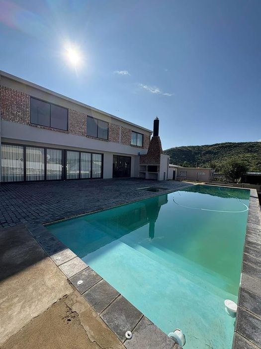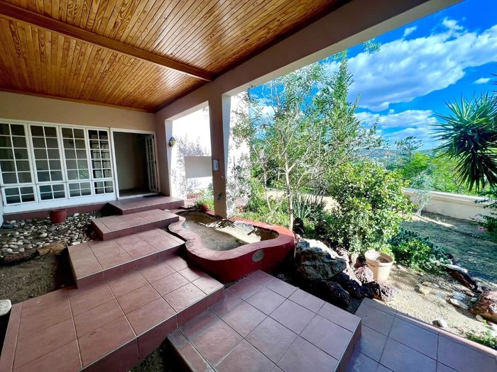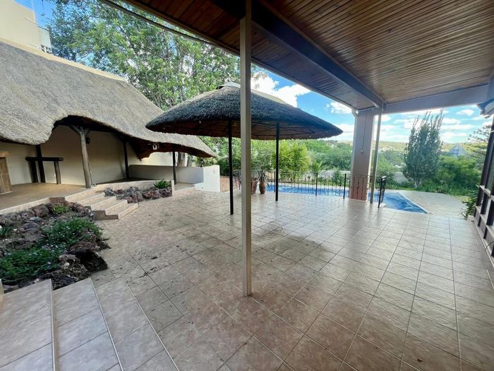 Entertainer's oasis with pool and lapa for alfresco gatherings, set against Klein Windhoek mountain views in a peaceful neighborhood — four bedrooms, three baths, double garages.