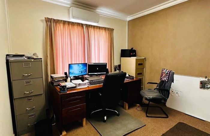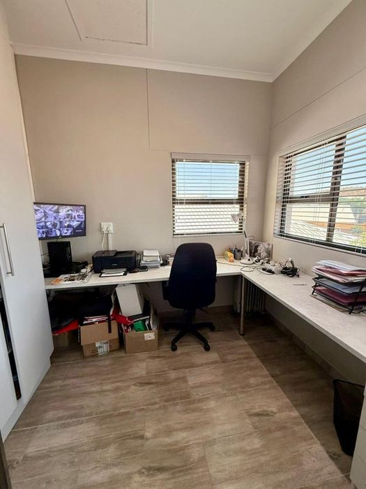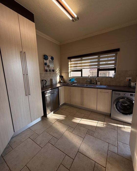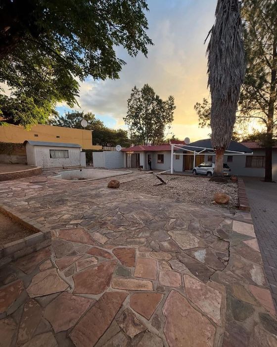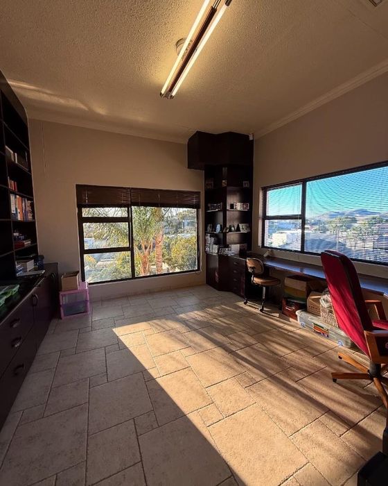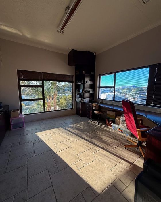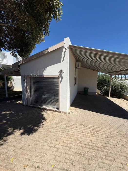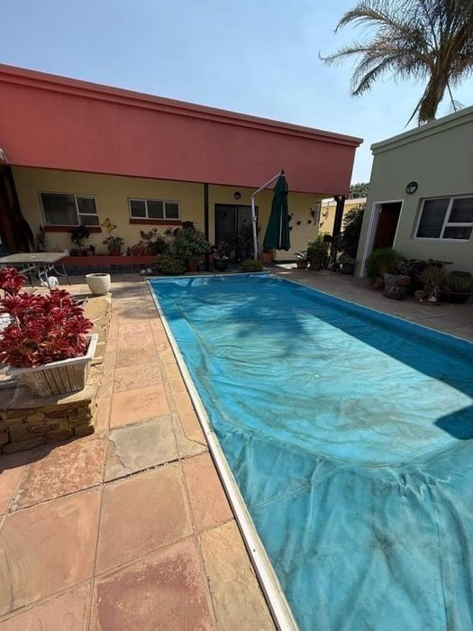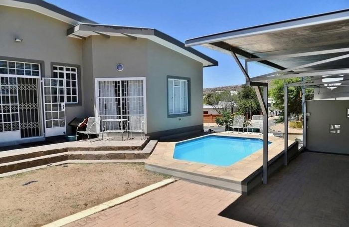 Versatile family-or-office property in Klein Windhoek near city amenities, offering a pool, central kitchen linking living and entertainment areas, plus a one-bedroom flat; three beds, two baths, double garage.