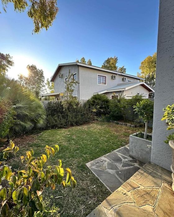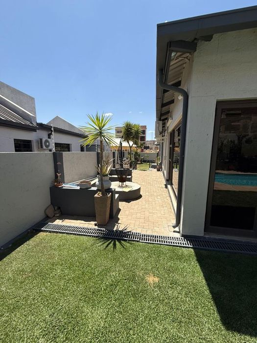 Entertainer's home in peaceful Elisenheim with pool and BBQ courtyard, open-plan living with fireplace and descending staircase; three en-suite bedrooms and double garage.