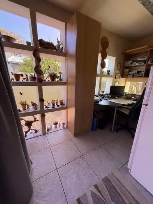 City-edge living with easy access to shops, schools and transport in Eros, Windhoek, featuring a bright kitchen with abundant built-in cupboards; includes two bedrooms, one bathroom and carport.