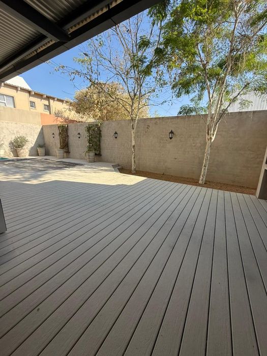Poolside entertaining and relaxed suburban living in Kleine Kuppe, close to shops and schools — freestanding home with under-roof BBQ, wooden deck, two bedrooms, two bathrooms.