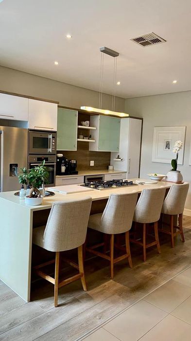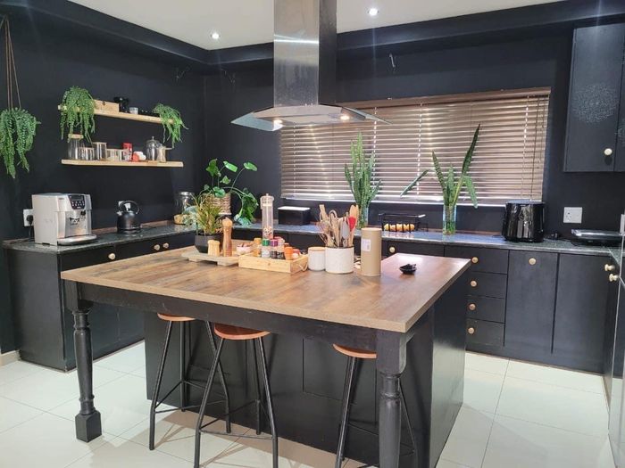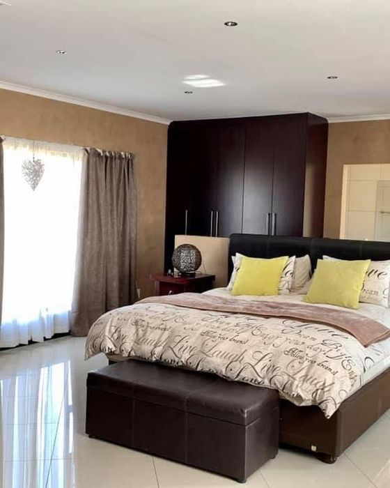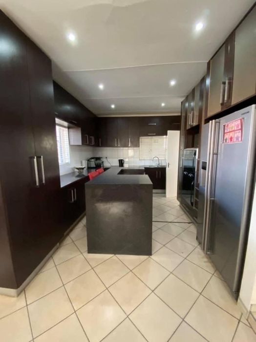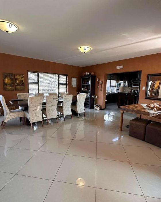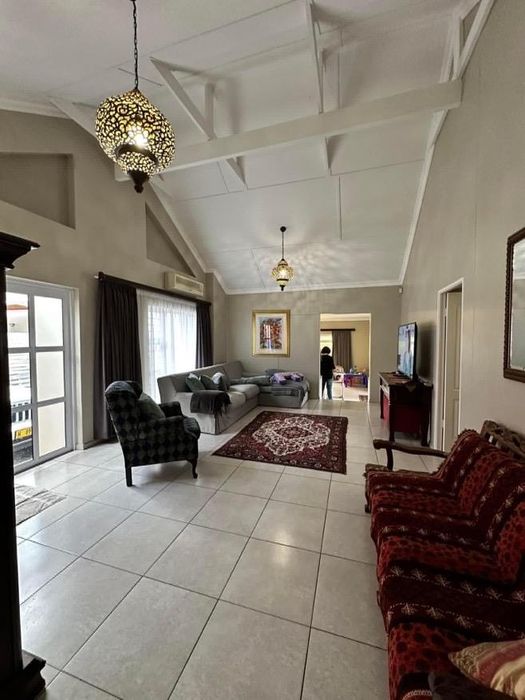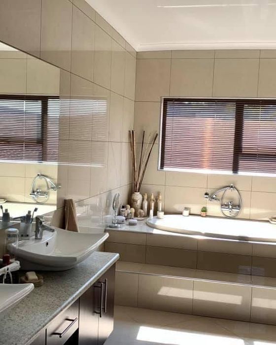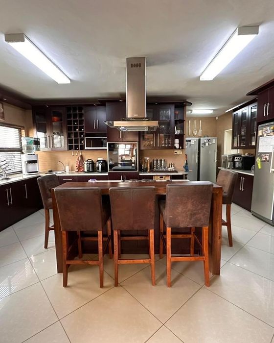 This is a family home with spacious garages, a double volume entrance, 4 bedrooms, an entertainment area, swimming pool, and good security.
