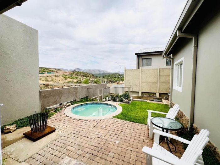 Modern 3-bedroom duet in Kleine Kuppe for N$2,650,000, featuring spacious interiors, garden, patio, and double garage. Contact Andreya.