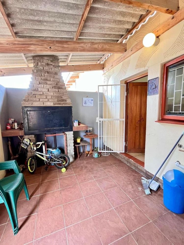 This property offers plenty of space and versatility, featuring a main house with three bedrooms, all with built-in cupboards, and two bathrooms. The home includes a kitchen, lounge, dining room, and an enclosed braai area—ideal for family gatherings. A single garage provides secure parking.