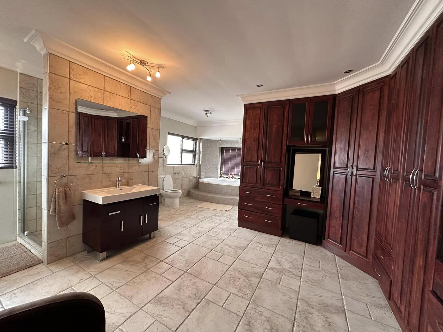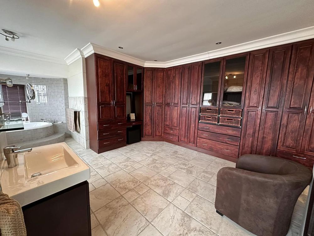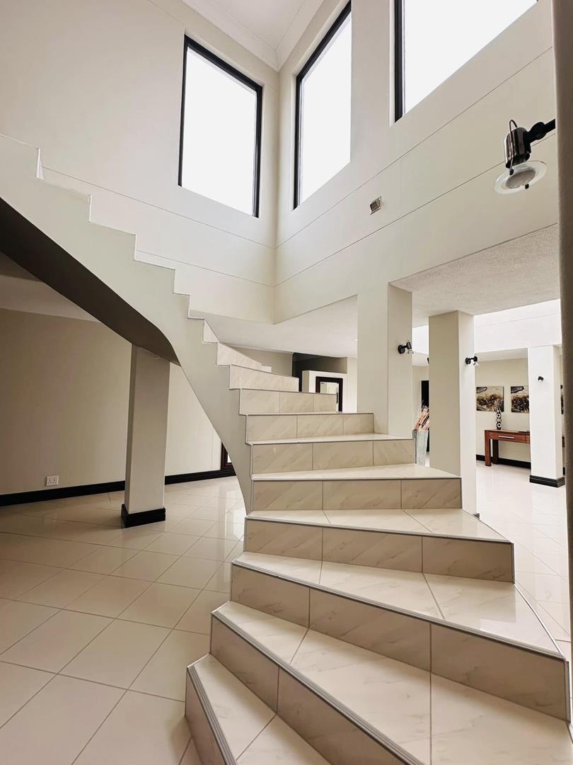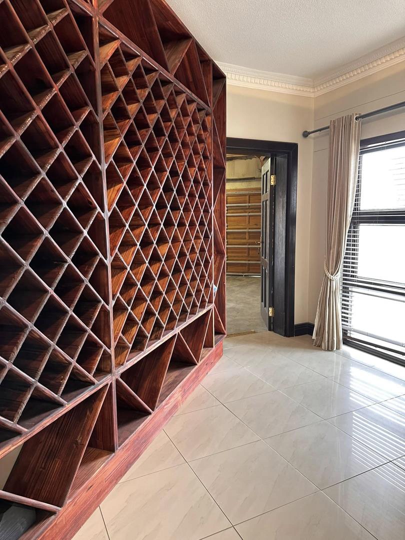 On the lower level, you will discover three distinct living areas designed for a formal lounge, a TV room, and a cigar lounge. Additionally, there is a dining room, kitchen, scullery, and laundry facilities. This level also features four bedrooms and three bathrooms.
