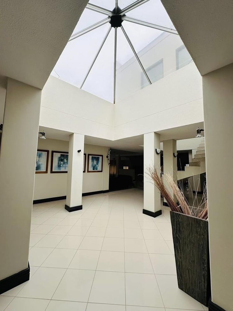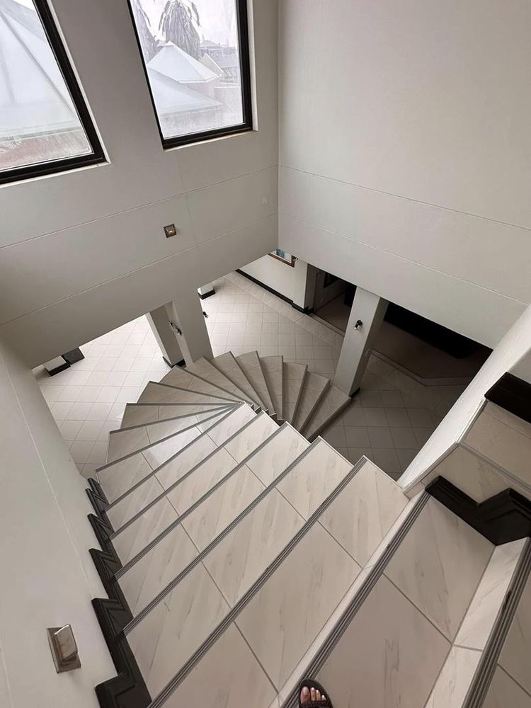 Eliminating the need for a traditional staircase, a hanging spiral staircase is illuminated by a skylight, leading to a pajama lounge with access to the main bedroom. The main bedroom boasts an ensuite bathroom and a spacious closet. Adjacent to this area is a gym or an additional bedroom, offering flexibility based on your requirements.