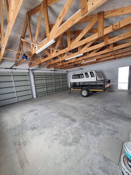 This property offers 3 garages and an additional store room , outside toilet , automated gate and garages , alarm and beams installed .